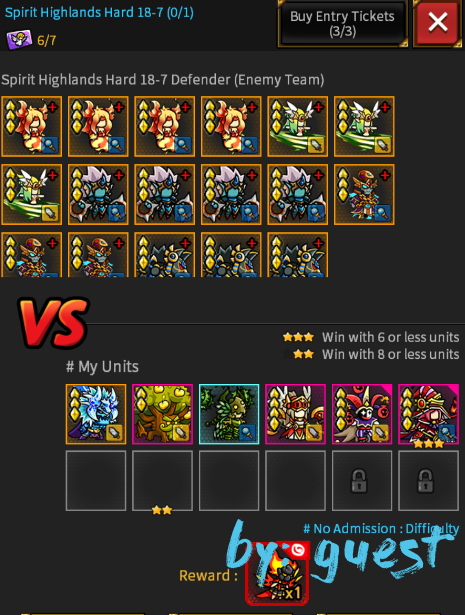Spirit Highlands (Hard) | Level 18-7 18-6 18 18-8 Enemies: Solutions:No solutions yet, see screenshots Users screenshots: 5 4 3 2 1 Upload file You can upload your own screenshot for this level To add your nickname to the image register on the website Endless Frontier letsplay level 18-7 Spirit Higlands (HARD) 0 3 348